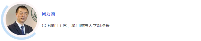 个人简介:CCF澳门主席,澳门城市大学副校長,分管学术事务,同时兼任数据科学学院院长。专长于网络安全与隐私保护、计算机网络、分布式系统等研究方向,曾主持并完成13项澳大利亚国家研究项目(ARC)。