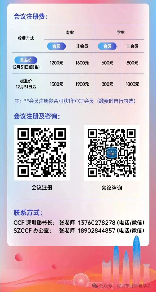 注册福利:12月31日前抢早鸟价(专业会员1200元/学生会员600元),非会员注册还能直接获1年CCF会员!
