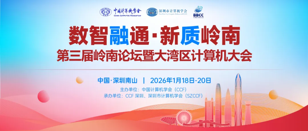 由中国计算机学会(CCF)主办,CCF 深圳及深圳市计算机学会(SZCCF)承办的“第三届岭南论坛暨大湾区计算机大会”即将启幕,本届大会聚焦具身智能、大模型赋能与量子科技三大前沿方向,助力大湾区打造全球数字科技策源地与产业创新枢纽。